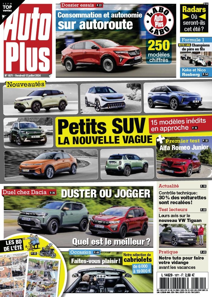 Chaque semaine, retrouvez toute l'actualité de l'automobile, les meilleurs conseils pour bien choisir sa voiture neuve ou d'occasion, des essais objectifs et indépendants, le prix des voitures neuves, la cote de l'occasion, des astuces pour entretenir son véhicule. Auto Plus c'est aussi des scoops et des révélations exclusives sur le monde automobile. Auto Plus, un hebdo exigeant, rigoureux et indépendant, expert et accessible, proche de ses lecteurs et résolument pratique.