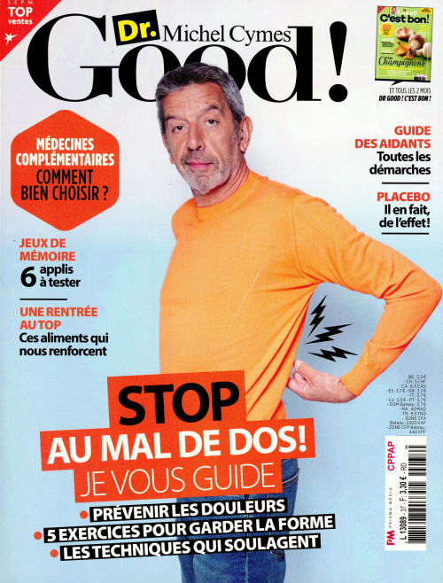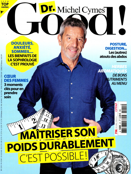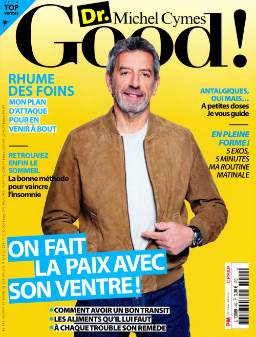 Dr Good! est le magazine santé bien-être incarné par Michel Cymes à l’état d’esprit positif et au service de la prévention. Michel Cymes vous donne toutes les clés pour devenir acteur de votre santé, être attentifs à vos sensations et comprendre l’origine des maladies. Dr Good! lance sa nouvelle formule avec les mêmes recettes qui ont fait son succès et des nouveautés : plus de témoignages positifs, des pages consultations, plus de conseils pour vivre mieux au quotidien, des rubriques pour toute la famille, ou encore, une rubrique dédiée aux médecines douces (hypnose, huiles essentielles, acupuncture…).