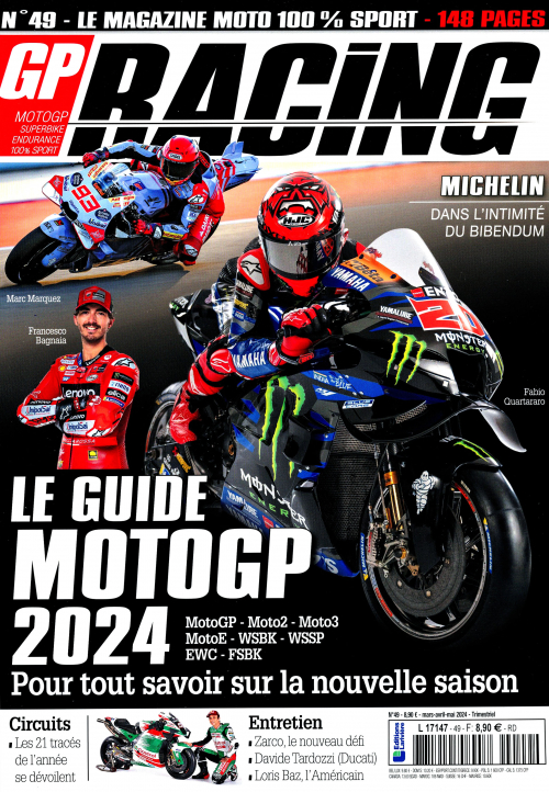 Fan de compétition, d'analyses, de rencontres, de dossiers techniques, de résultats, GP Racing est fait pour vous. GP Racing est exclusivement consacré au sport moto. MotoGP, Moto2, Moto3, Superbike mondial, Supersport mondial, Endurance...