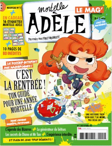 Retrouve tout l'univers de Mortelle Adèle dans ce magazine avec des planches de BD inédites, un gros dossier thématique, des rubriques interactives, des jeux, des quiz et un cadeau trop mortel dans chaque numéro !